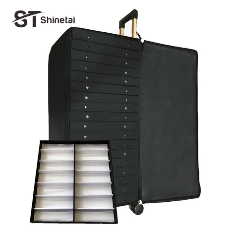 Pronto per la spedizione valigia nera per occhiali da sole Oxford per Display scatola portaoggetti per occhiali per occhiali con Trolley per vassoi
